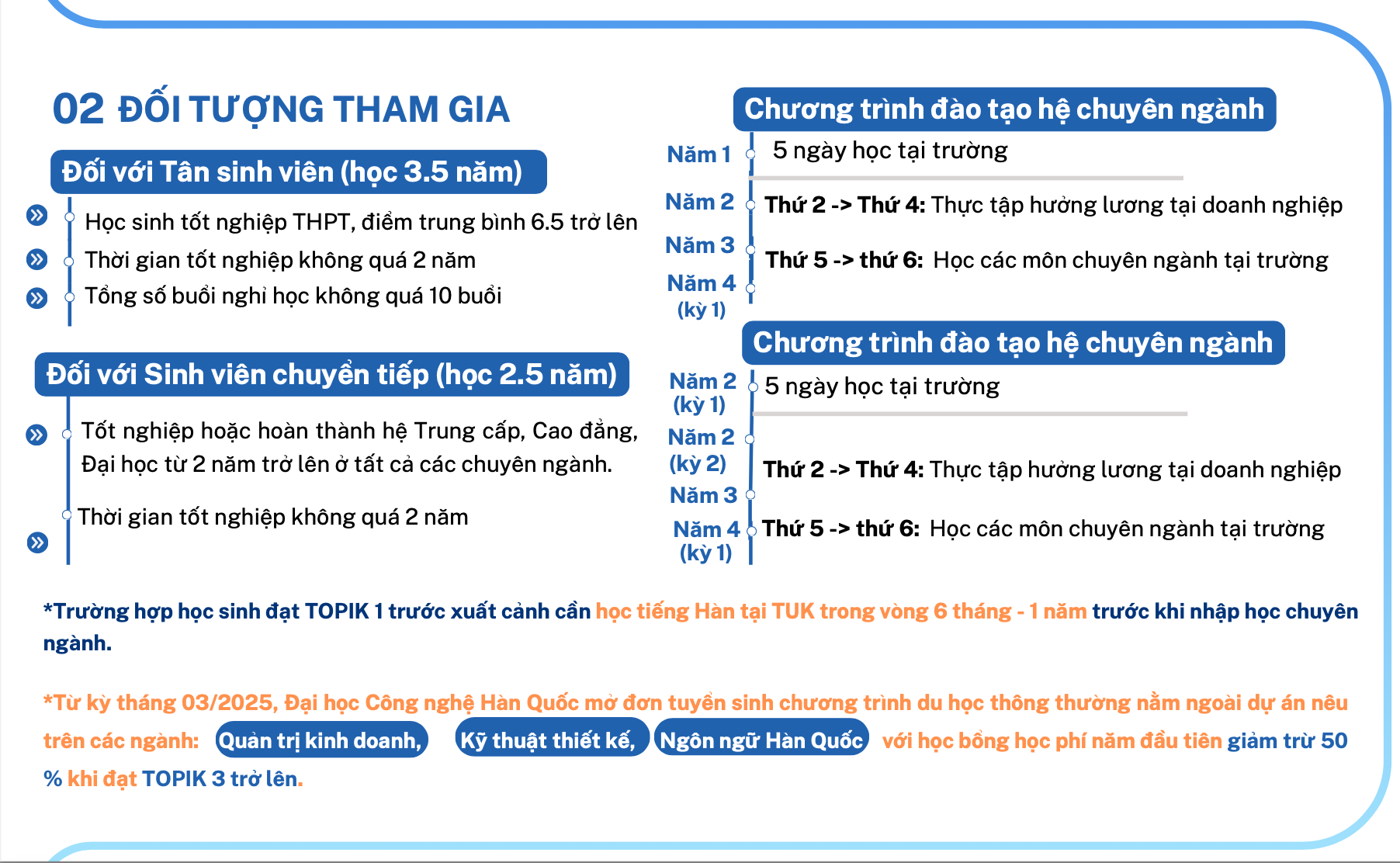 TỪ THÁNG 03/2025, Đại học Công nghệ Hàn Quốc tuyển sinh thêm các ngành QUẢN TRỊ KINH DOANH, KỸ THUẬT THIẾT KẾ, NGÔN NGỮ HÀN, học bổng 50% khi đạt TOPIK 3 trở lên.